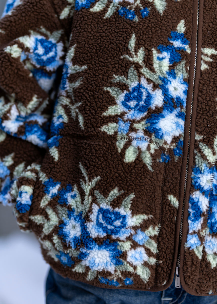"Rype fleece jacket" fra Holzweiler. En lekker fleecejakke med blomstermotiv. Style den sammen med jeans og sneakers for en kul og avslappet look.