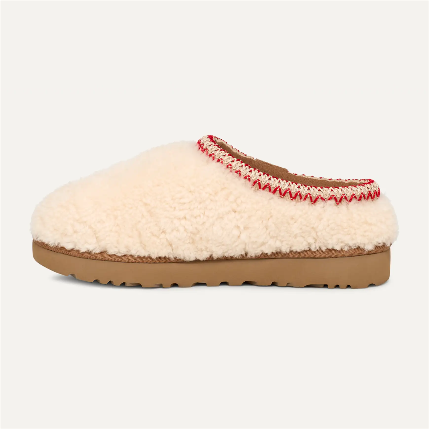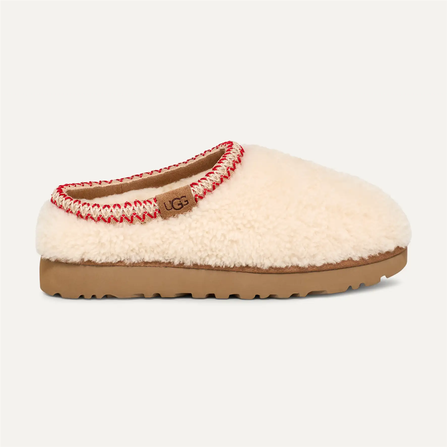 "W Tasman Maxi Curly" fra UGG gir en leken oppdatering av den populære Tasman-skoen. Slip-on med krøllete saueskinn og semsket skinnoverdel.