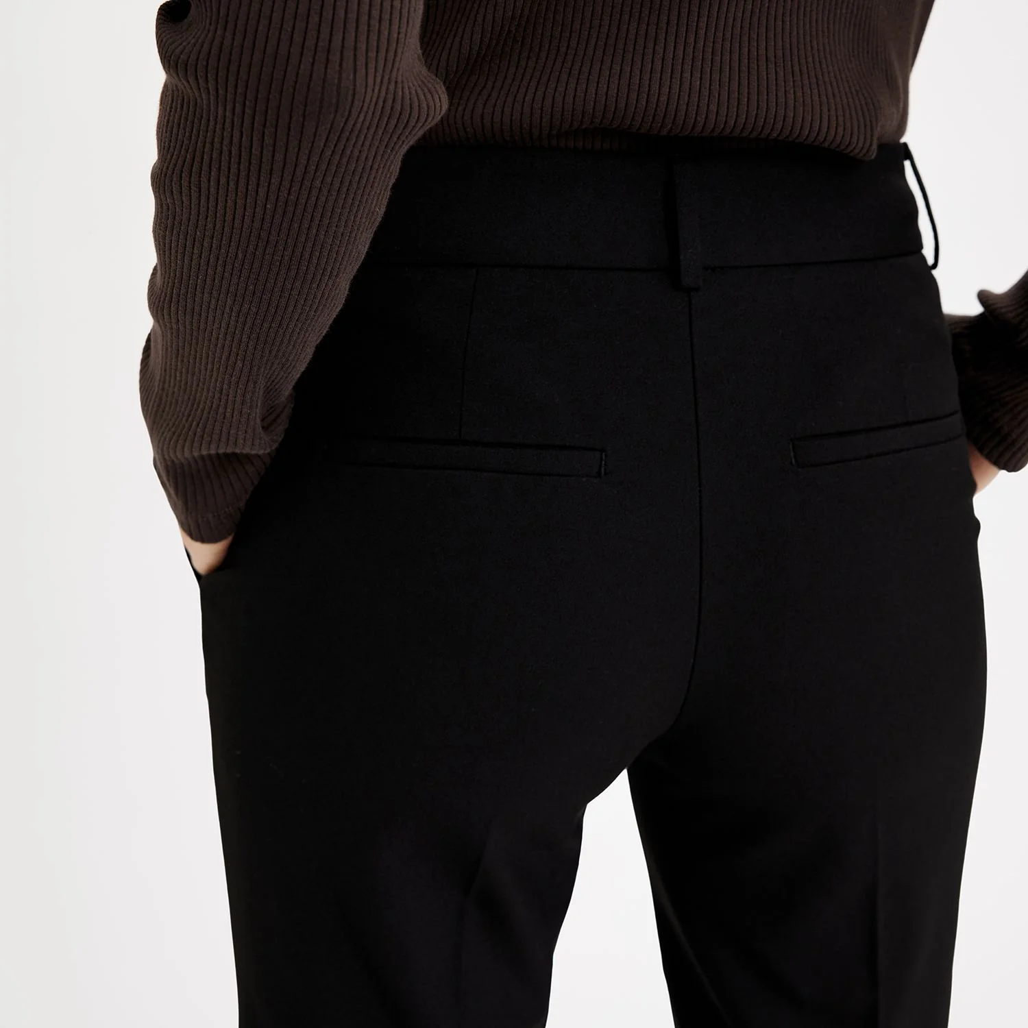"ClaraFV Long 285 Black Glow Trousers" fra Five Units. Penbukser med sleng, laget i elegant og ren vev. Allsidig bukse som passer like bra på kontoret som til fest.