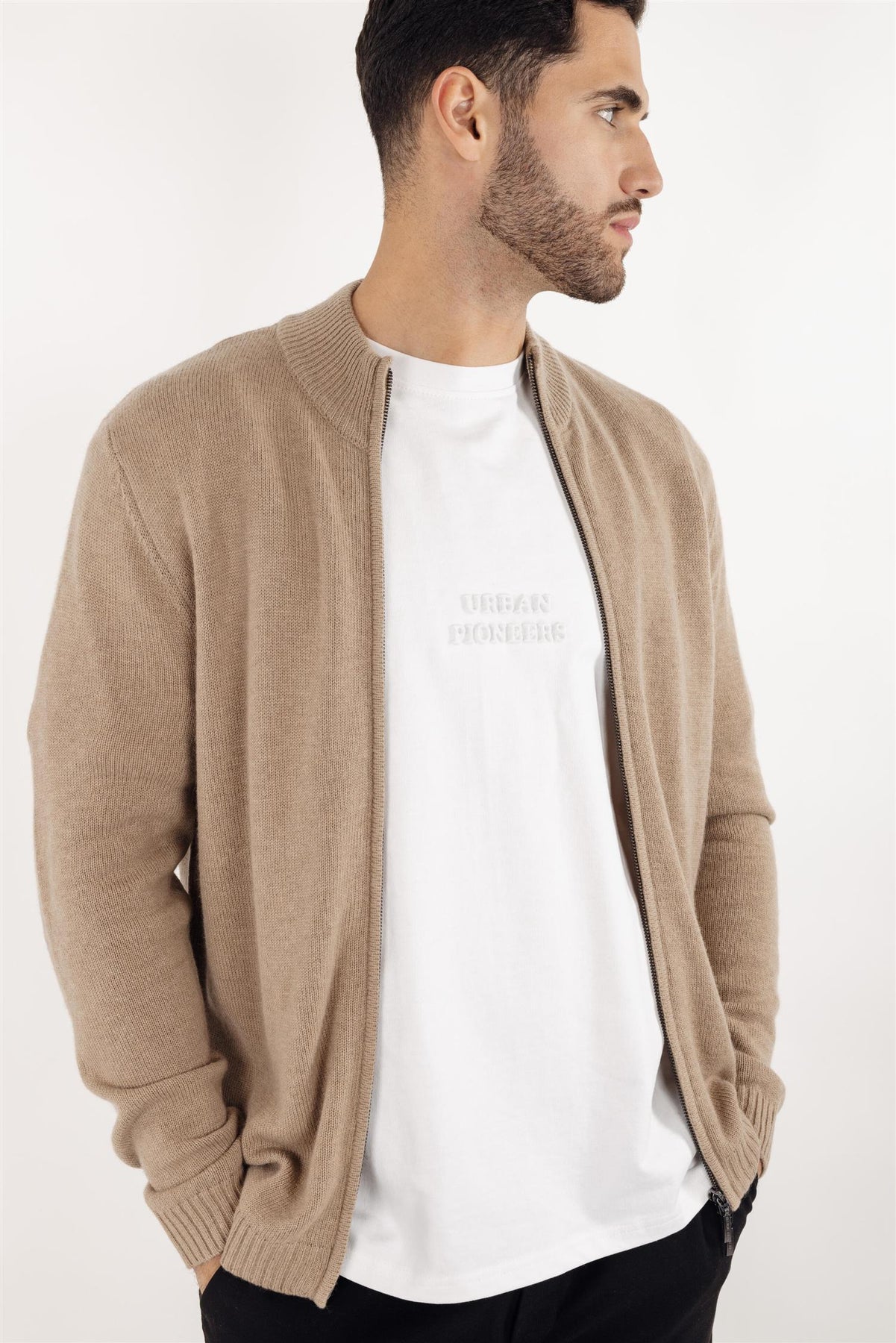 "Tasse Wool Cardigan" fra Urban Pioneers. En klassisk cardigan med glidelås i front og lapper på albuene.