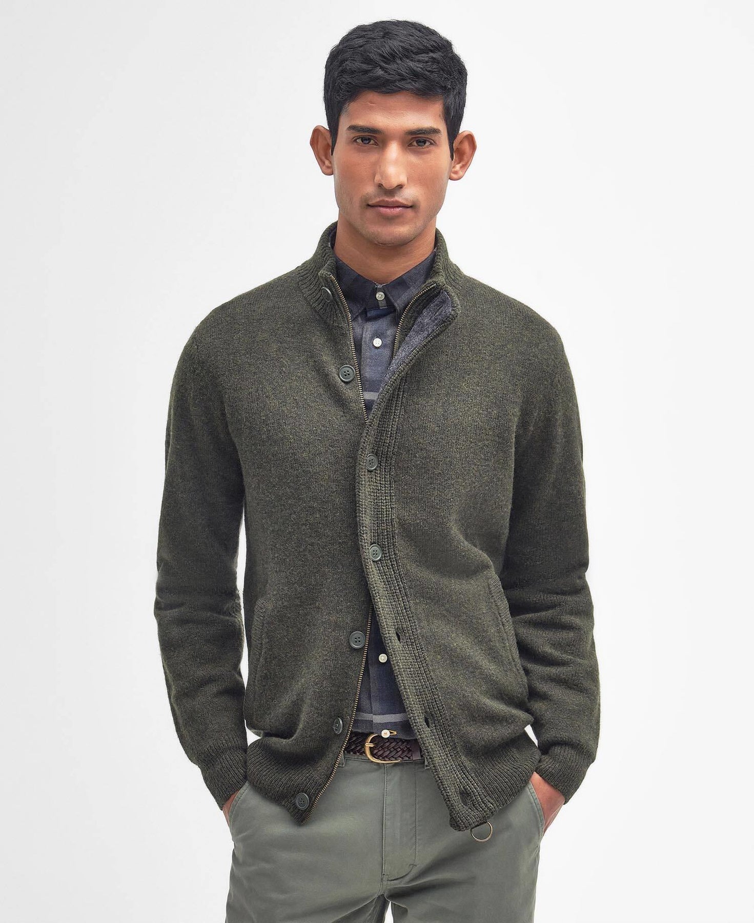 "Essential Patch Zip Through" fra Barbour. En nydelig genser som holder deg god og varm, og passer perfekt inn i enhver garderobe.