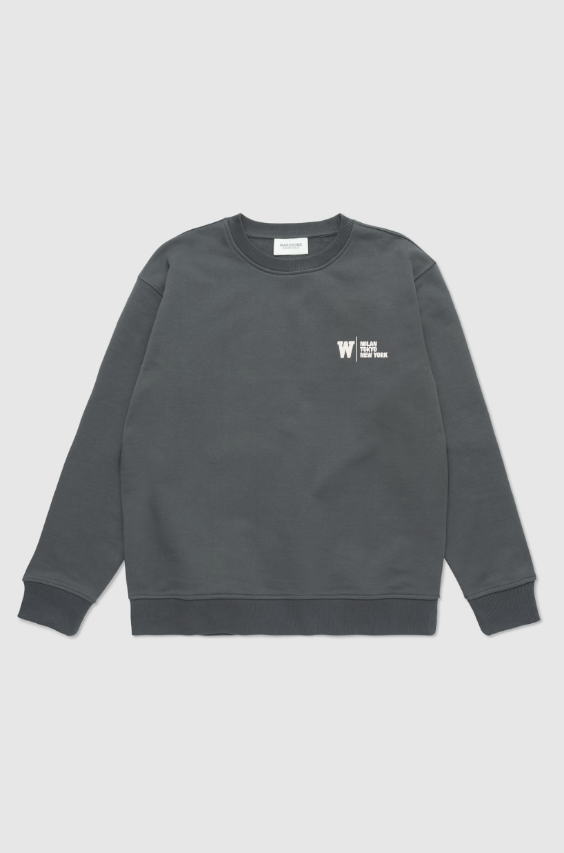 "Crewneck NYC Asphalt" fra Wardrobe Essentials. En stilren genser med print. Passer veldig fint til hverdag.