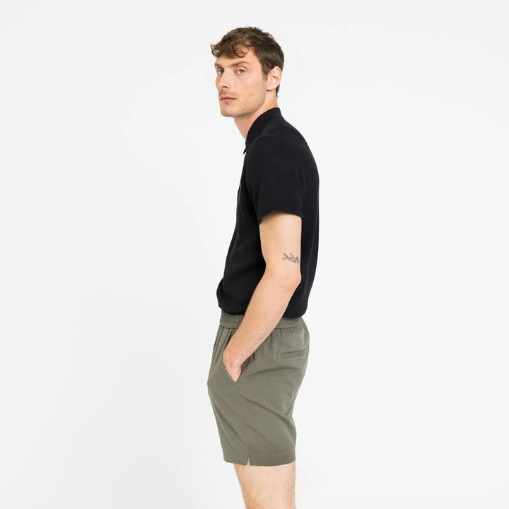 "Turi" shorts fra Plain, i dus, pen grønntone. Strikk i livet, stikklommer i sidene og pyntelommer bak. Perfekt allsidig plagg, som kan kombineres med t-skjorte på dagtid og penskjorte på kvelden. Modellen på bildene er 192 cm og har på seg størrelse 31.
