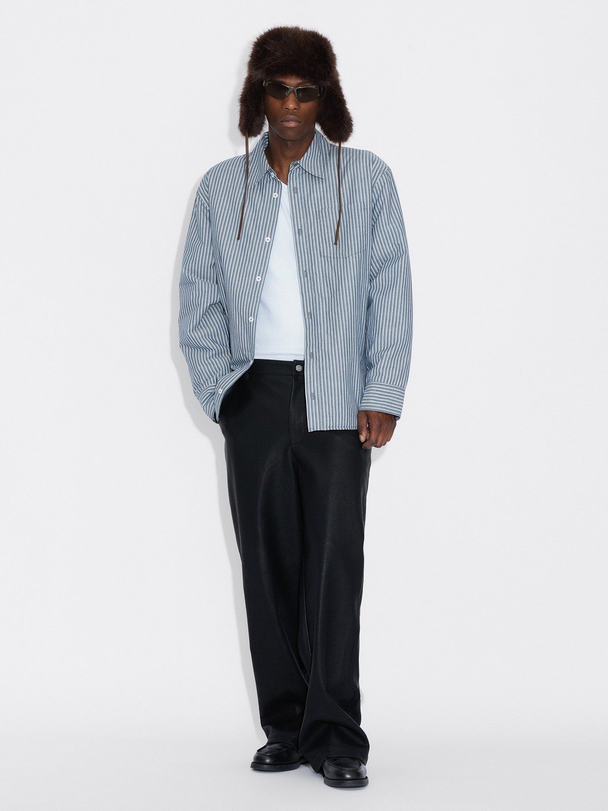 "Furry Trapper Hat" fra Holzweiler i mørk brun er en stilig og varm lue som kombinerer funksjon og fashion. Den har snøring som enten kan knytes under haken eller bak hodet for en variert look. Den har også en brem som er festet. Luen er laget av myk fuskepels og fôret med sateng.