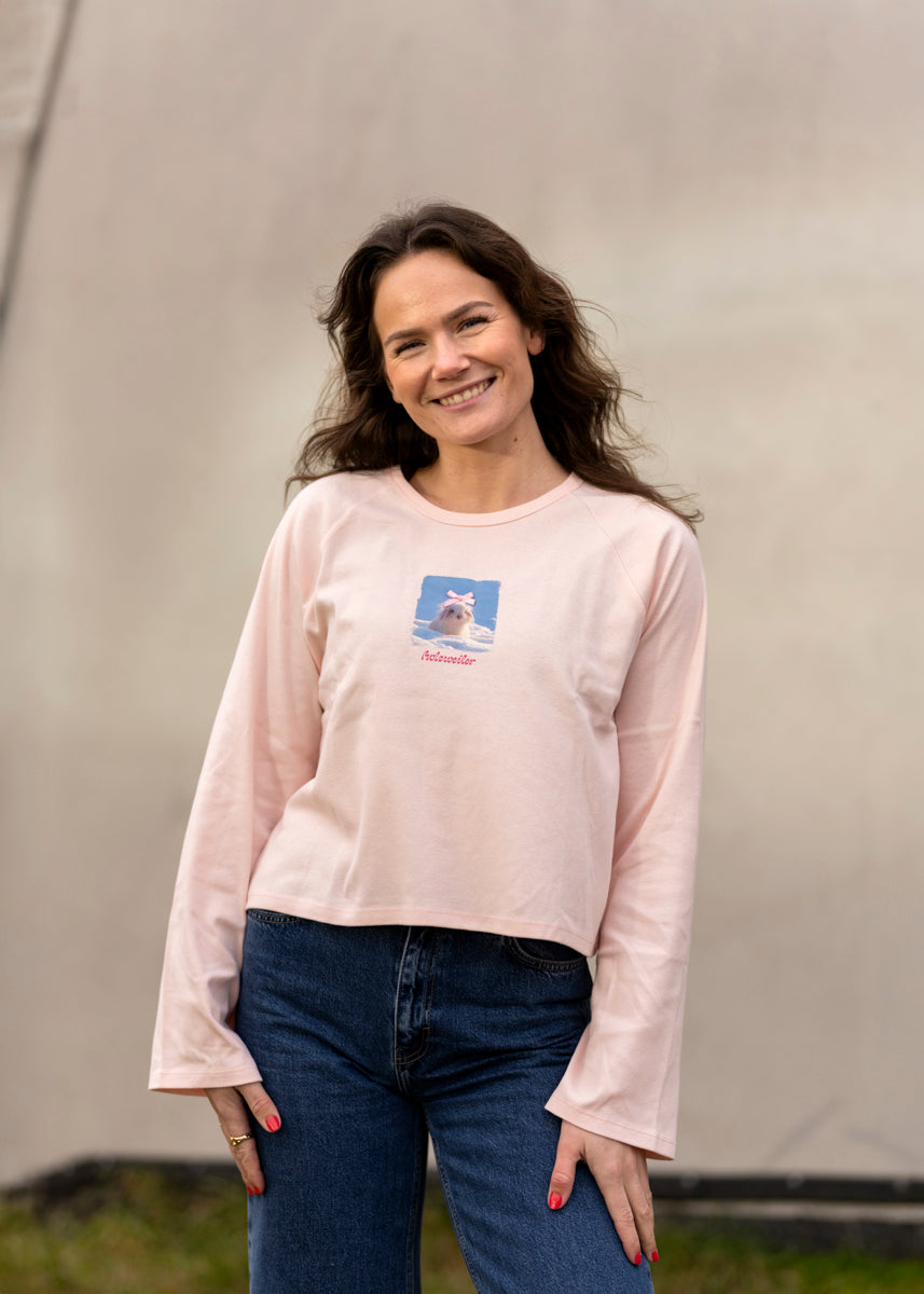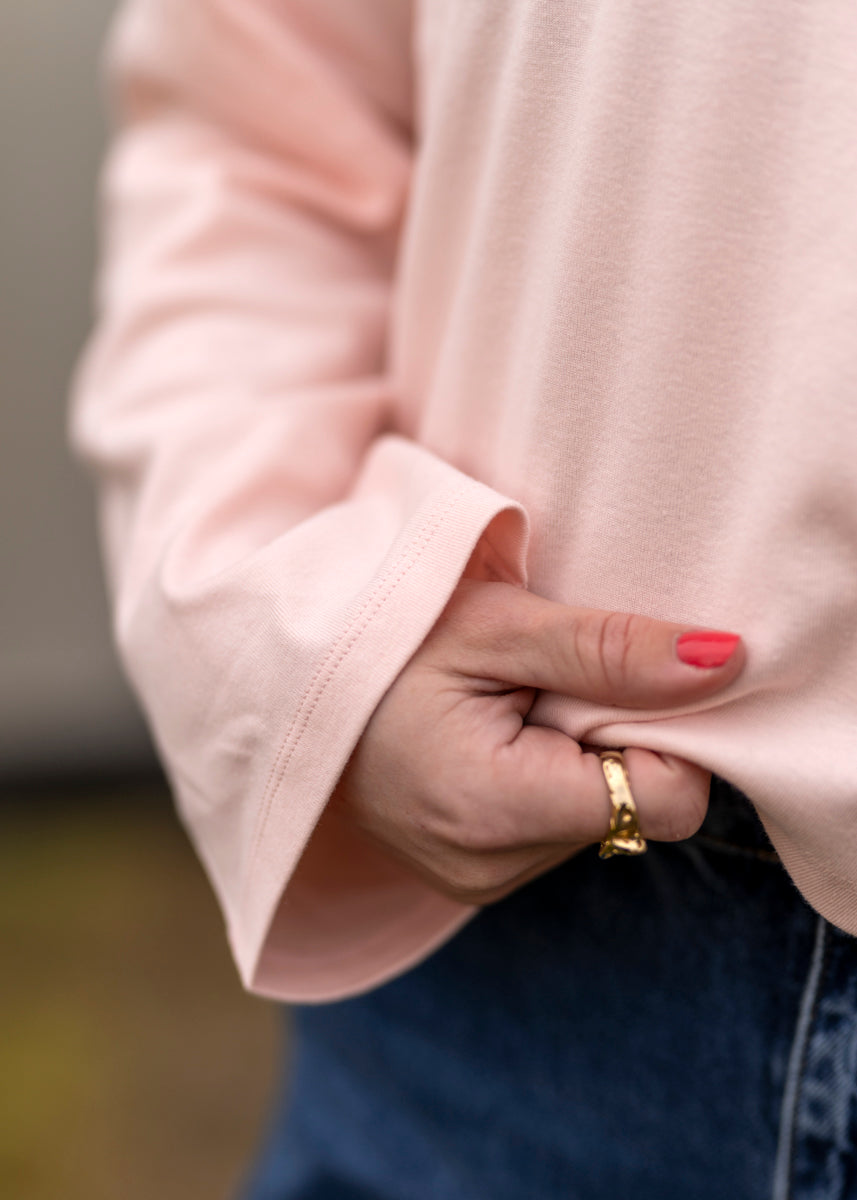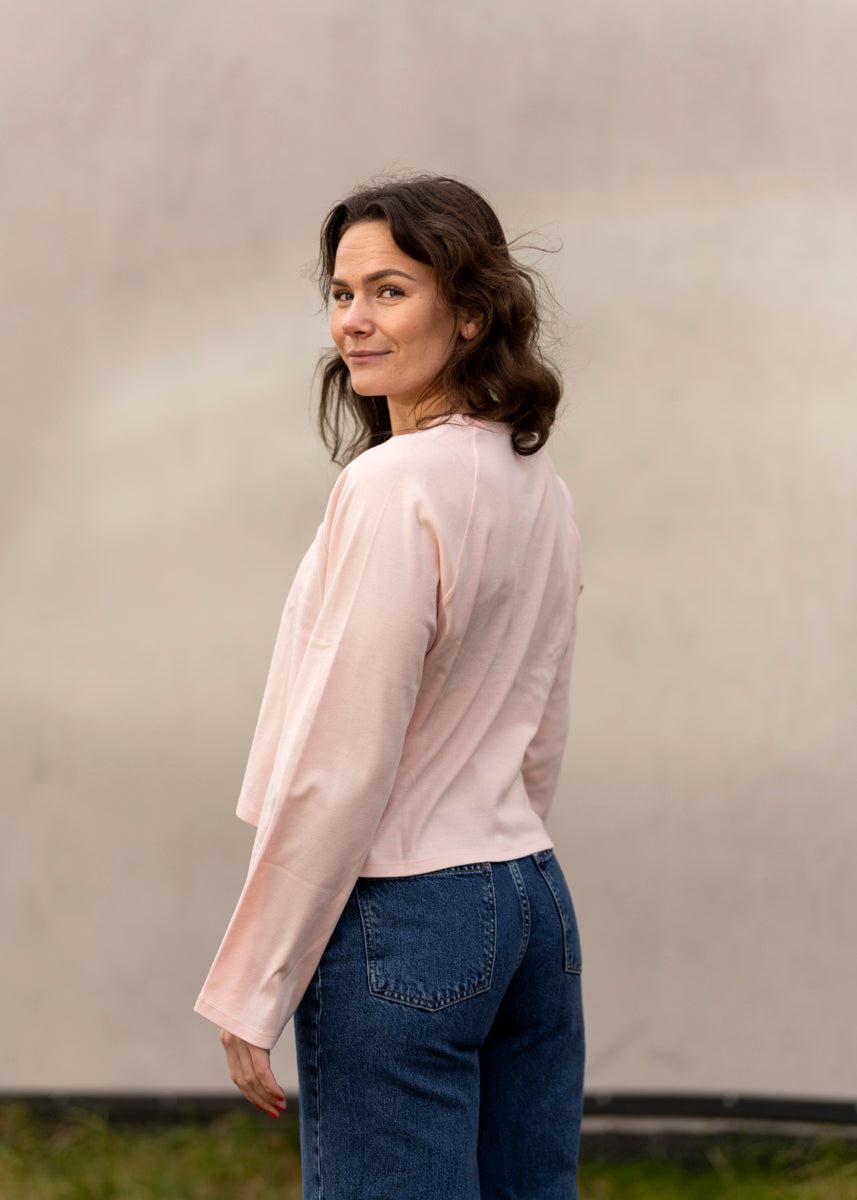 "Kitty Longsleeve" fra Holzweiler er en stilren og komfortabel topp i lys rosa, perfekt for hverdagsbruk.