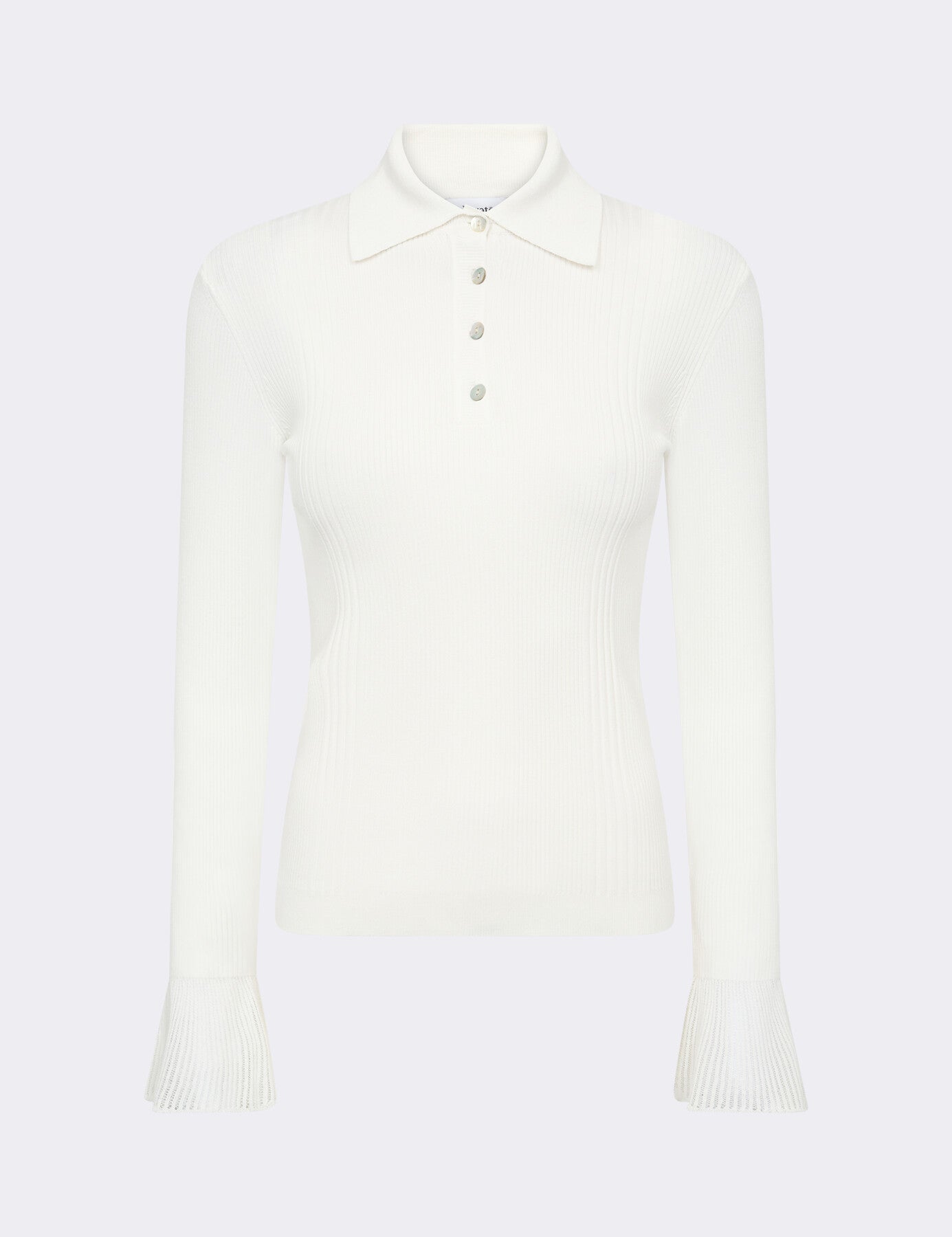 "Lr-Obi 1 Cardigan" fra Levete Room. En enkel, hvit genser med fine detaljer.