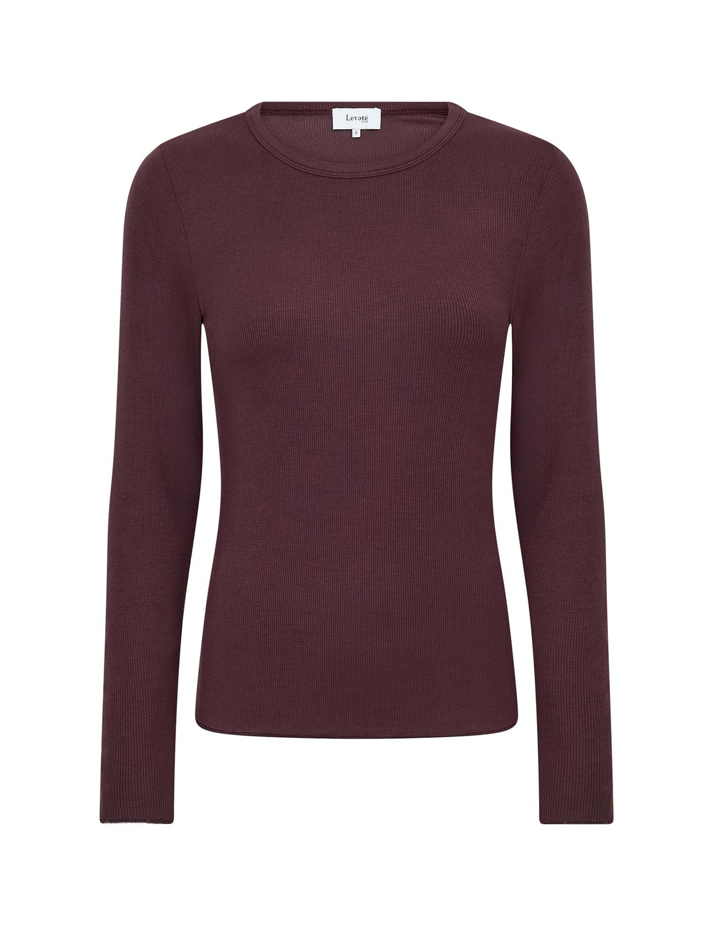 "LR-IKA 4 Genser" fra Levete Room. En enkelt og fin genser i burgunder. Den myke og pustende kvaliteten gjør den perfekt for hverdagsbruk.