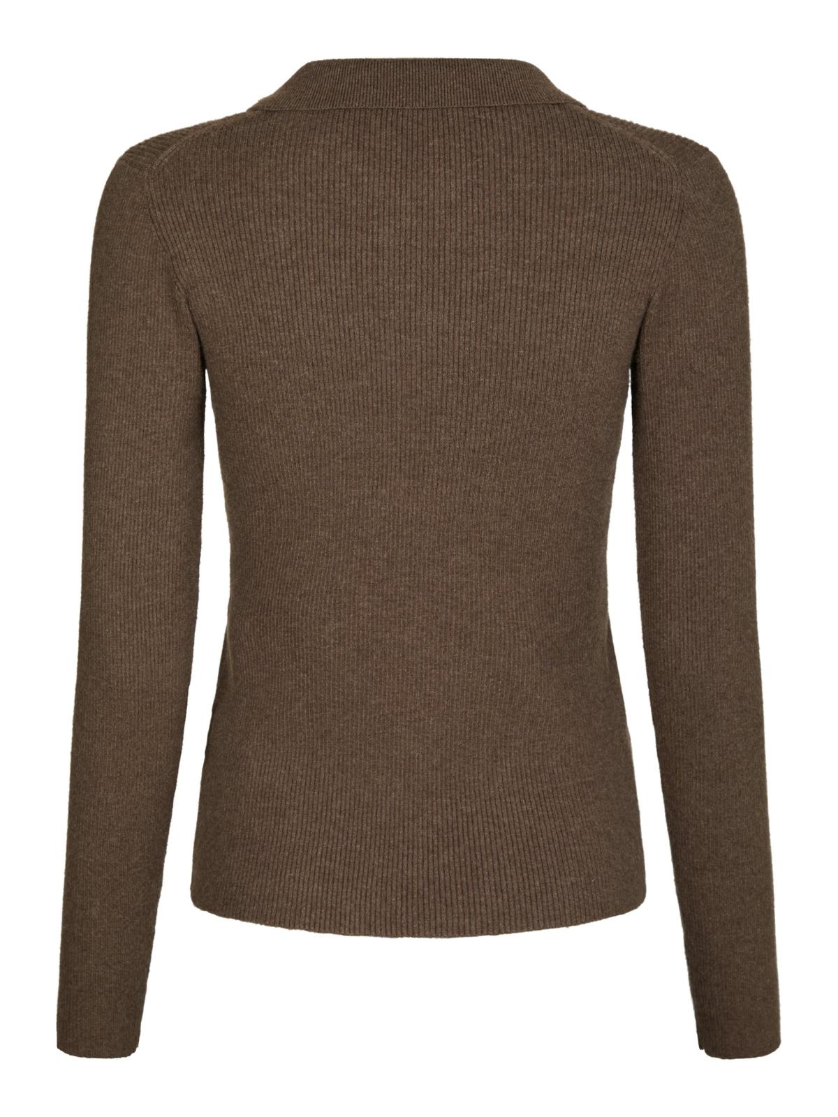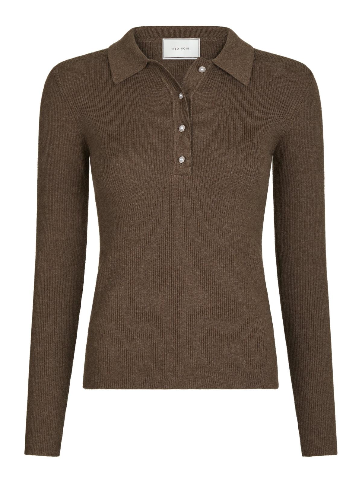 "Panama Knit Blouse" fra Neo Noir. En fin langermet bluse med krage og knappelukking i halsen.