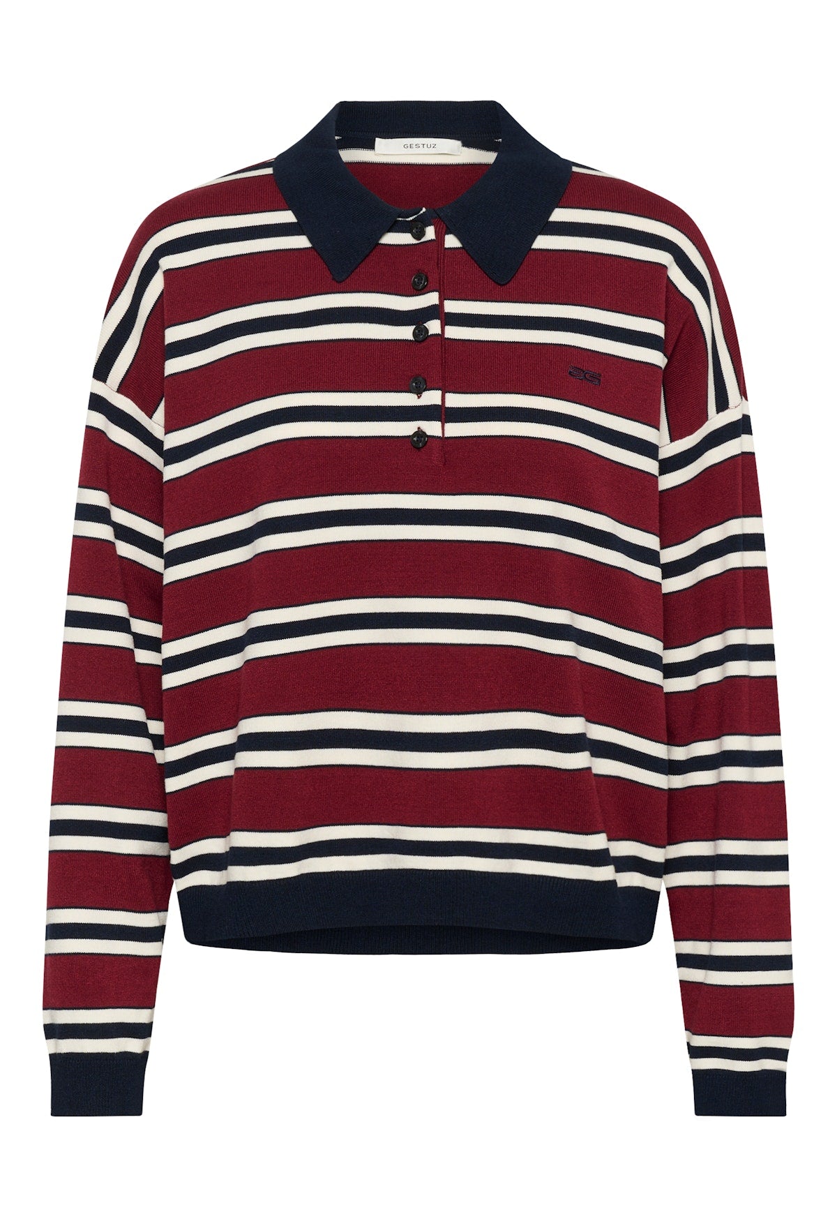 "GZpaige Polo Pullover" fra Gestuz er en pen og komfortabel langermet polo, med ribbestrikk nederst på genseren og på ermene. Den har en løs passform som gir en avslappet look. Passer perfekt til hverdag.