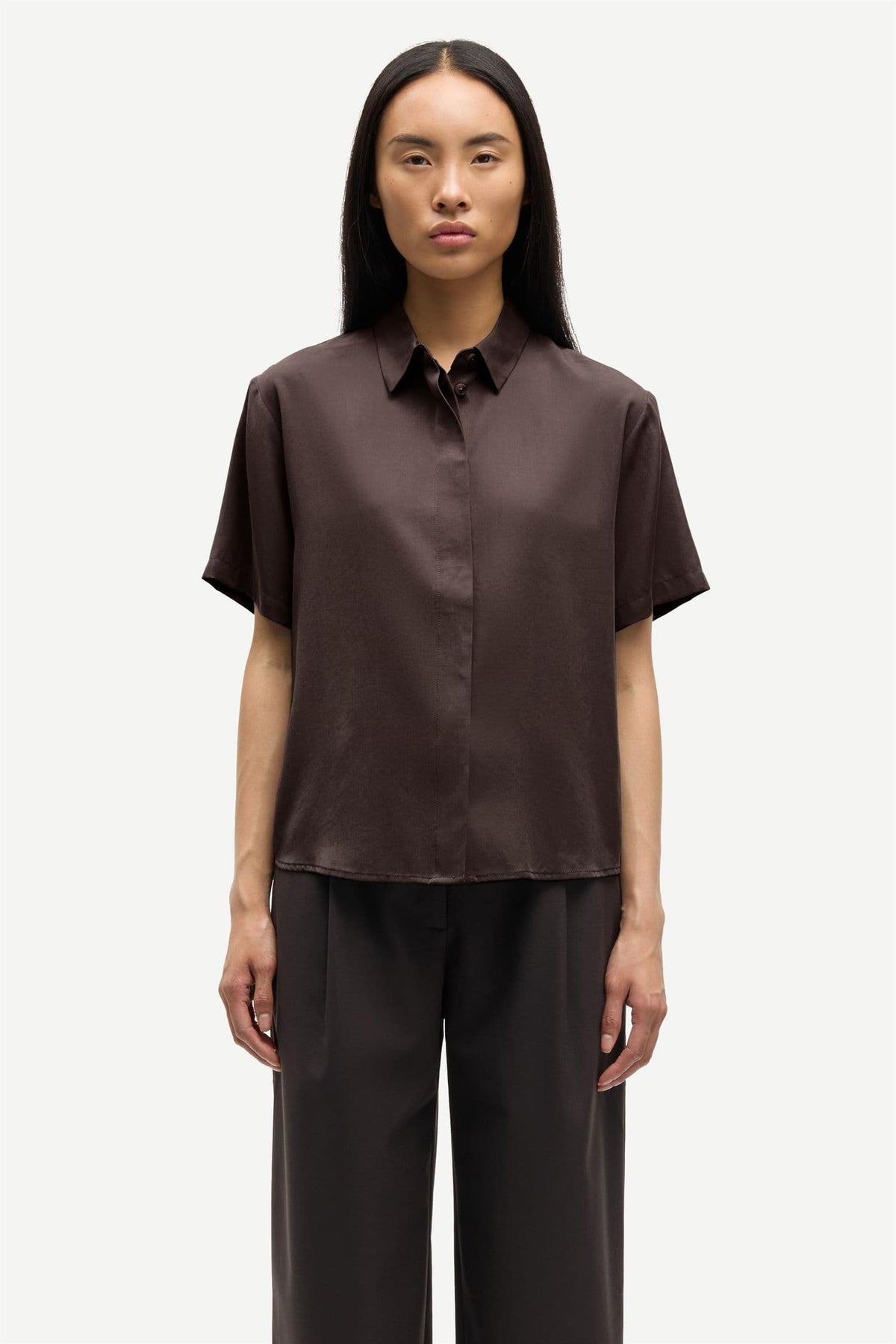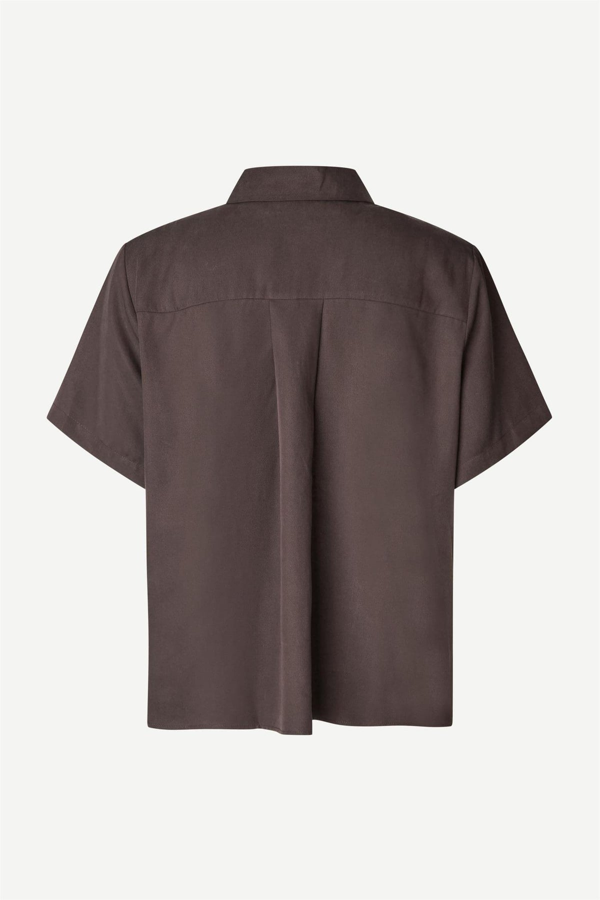 "Mina Shirt" fra Samsøe Samsøe er en pen og moderne, kortermet skjorte i en elegant Black Coffee-farge. Denne skjorten er perfekt for de som ønsker å tilføre et elegant plagg til garderoben sin. Med et tidløst design kan den enkelt styles for ulike anledninger.