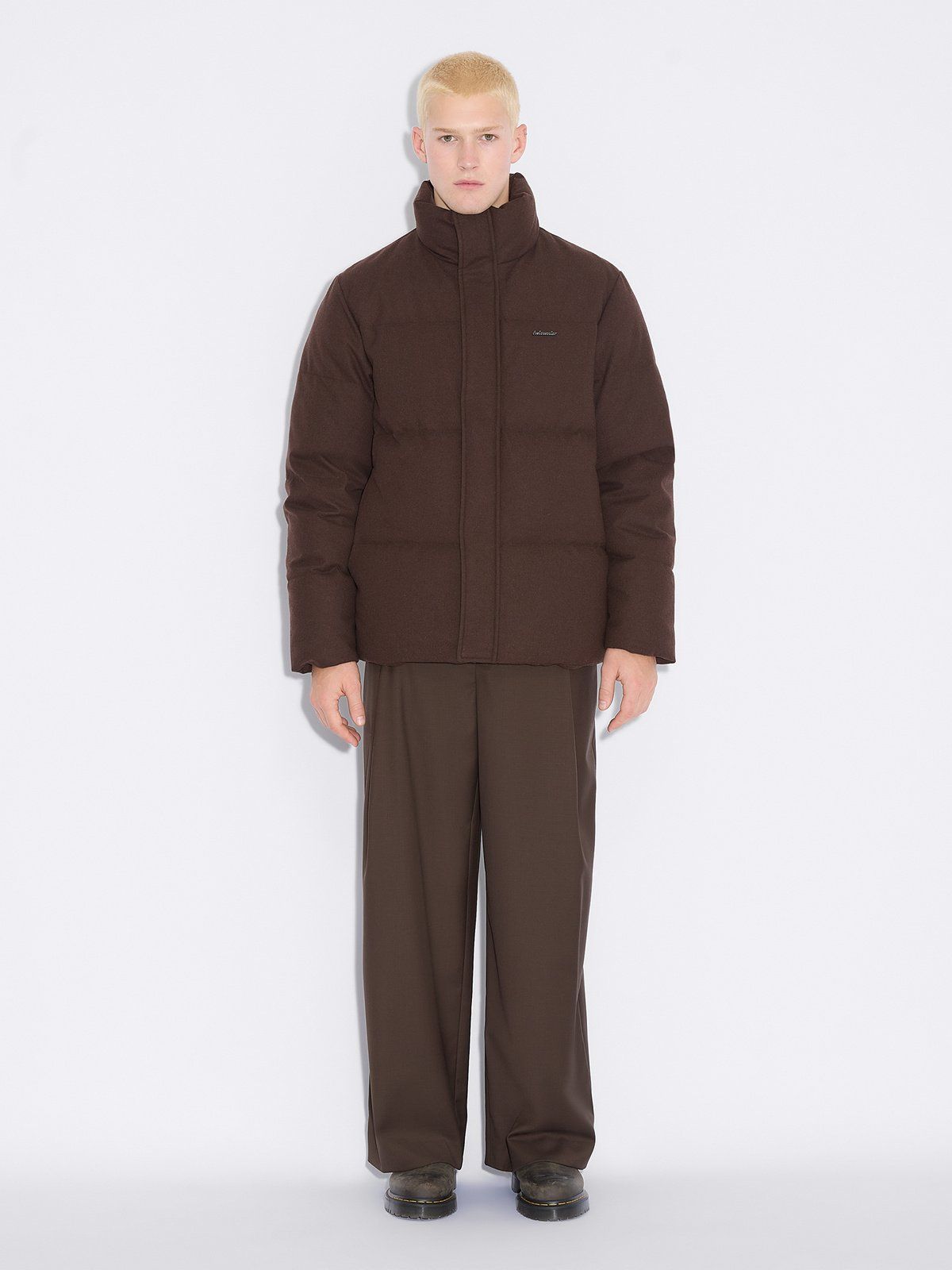 "Tech Wool Jacket" fra Holzweiler er en ulljakke med dun, i en vakker brunfarge. Jakken er laget av en teknisk ullblanding med vannavvisende overflate. Denne er perfekt til høsten og holder deg varm gjennom vinteren.