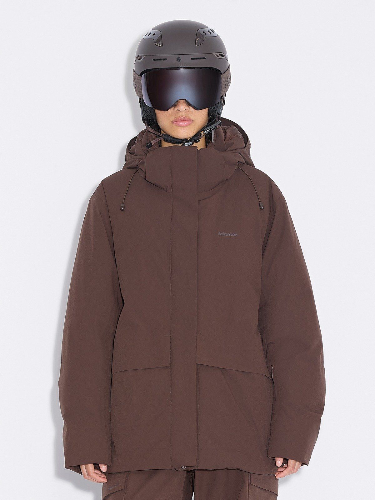 "Tryvann Down Jacket" fra Holzweiler. En stilig jakke i en nydelig brun-farge. Denne jakken passer perfekt til skibakken, men også til vanlig utendørs bruk.