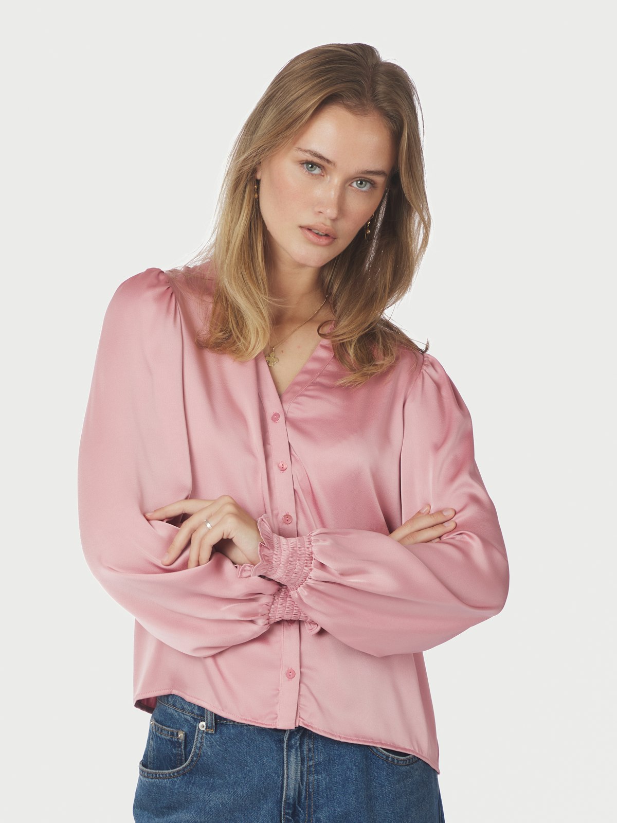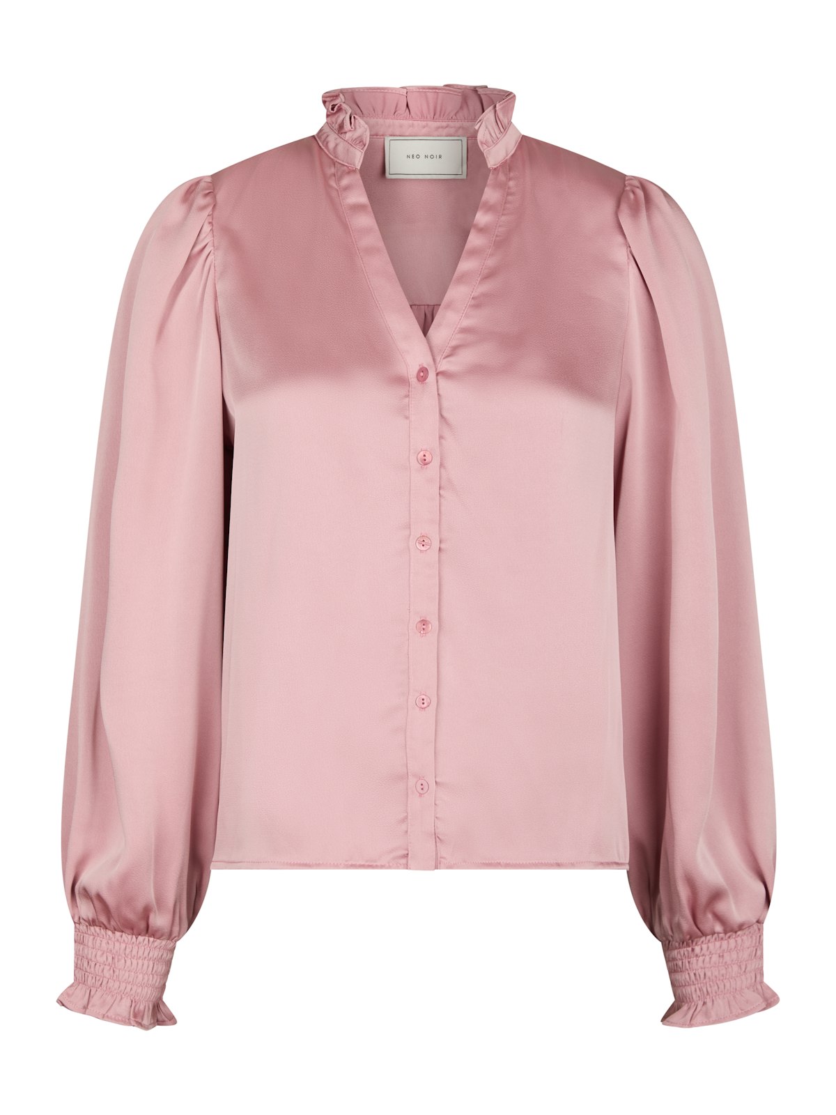 "Delsie Drapy Sateen Blouse" fra Neo Nori er en elegant og moderne bluse i lys rosa, perfekt for en sofistikert stil.