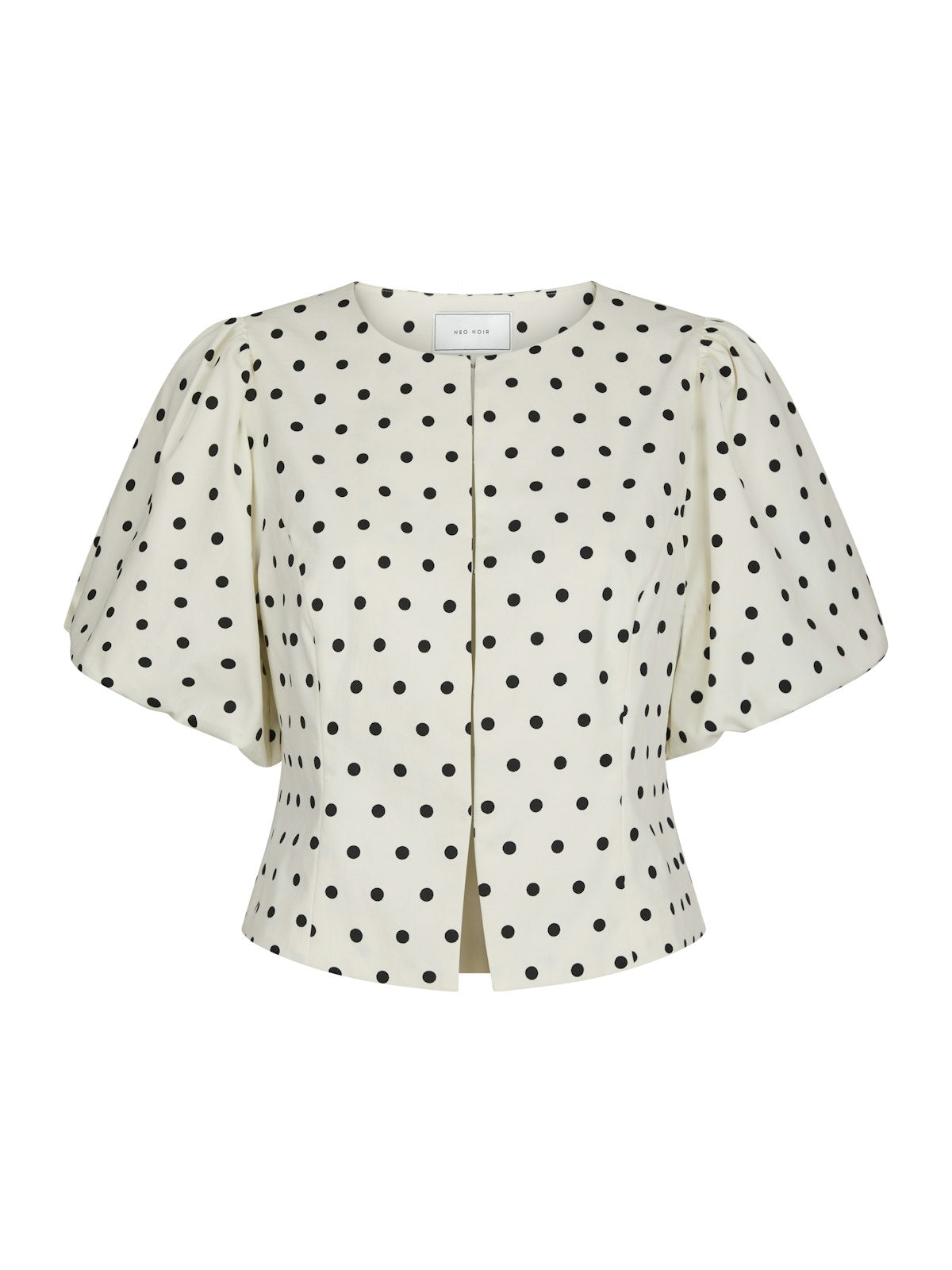 "Anela Dot Blouse" fra Neo Noir er en stilig bluse med puffermer og knappelukking foran. Perfekt for spesielle anledninger.