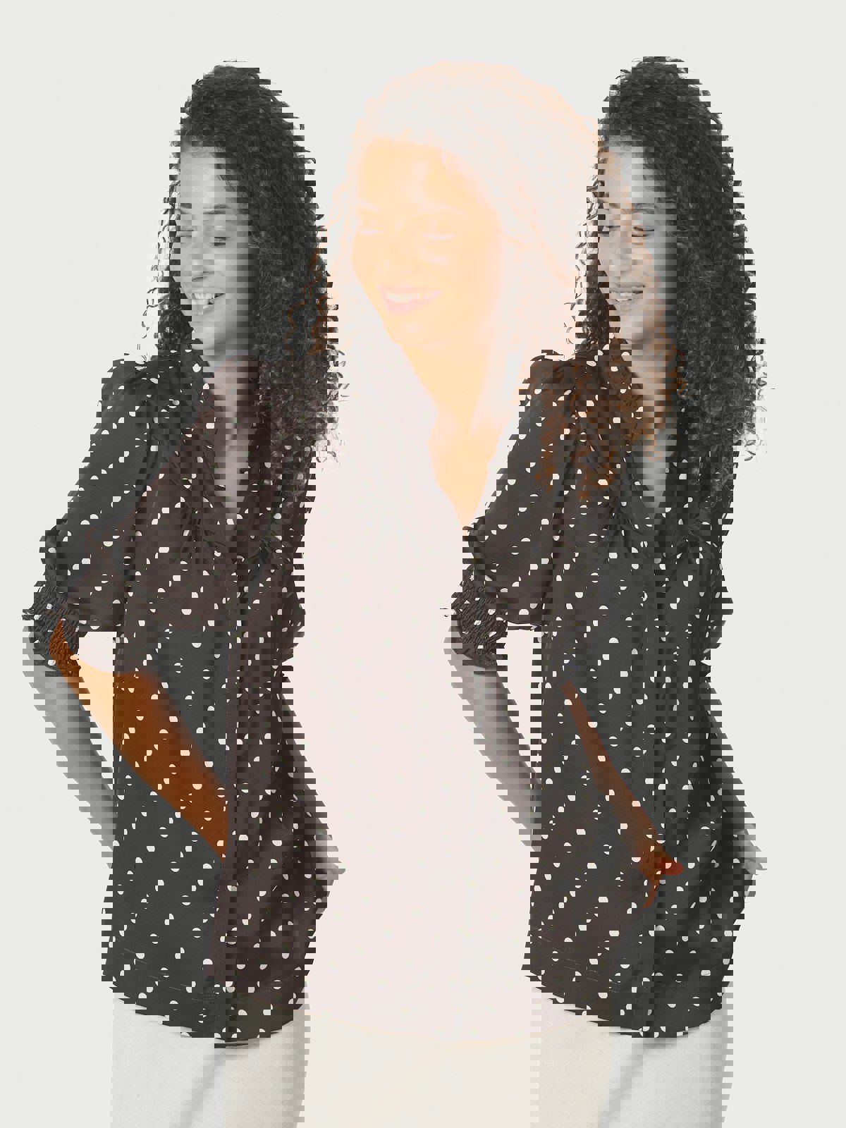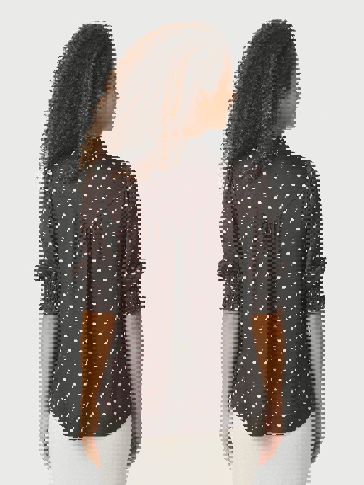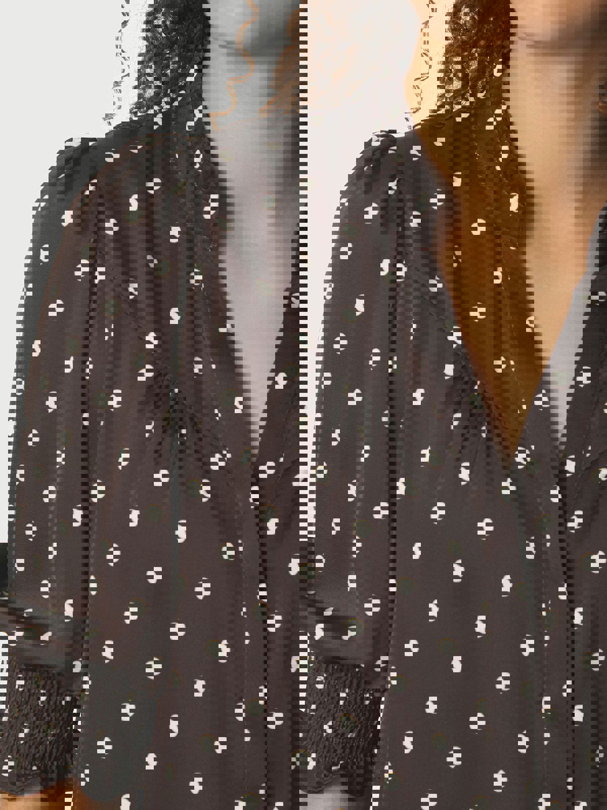 "Diana Dot Blouse" fra Neo Noir er en stilren og moderne bluse i mørk brun nyanse med hvite prikker. Den er perfekt for en sofistikert og feminin look. Den elegante fargen kombinert med et tidløst design gjør den enkel å style til både hverdags og mer pyntede anledninger.