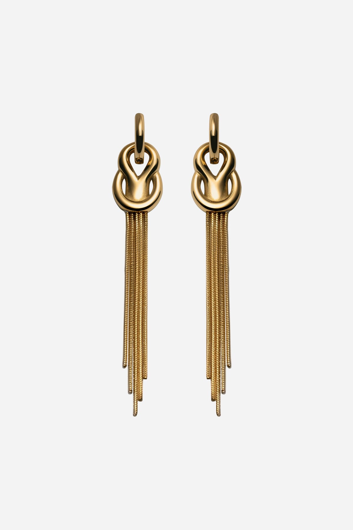 "The Fringe Earrings" fra Camilla Jewelry. Flotte statement-øreringer i gull, med frynsedetaljer som gir bevegelse og glans.