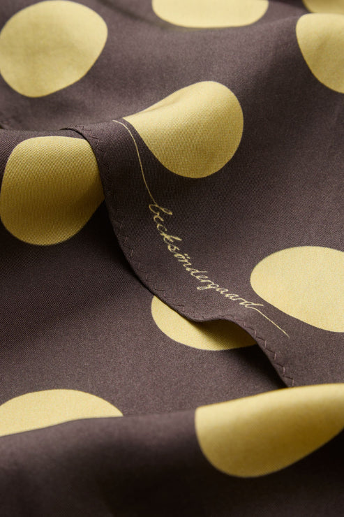 "Maxi Polka Triangle Scarf" fra Becksöndergaard er et elegant trekantskjerf i 100 % silke, designet for å gi antrekket et sofistikert og lekent uttrykk. Det oversized prikkemønsteret skaper et iøynefallende og moderne preg, perfekt både til hverdags og mer pyntede anledninger.