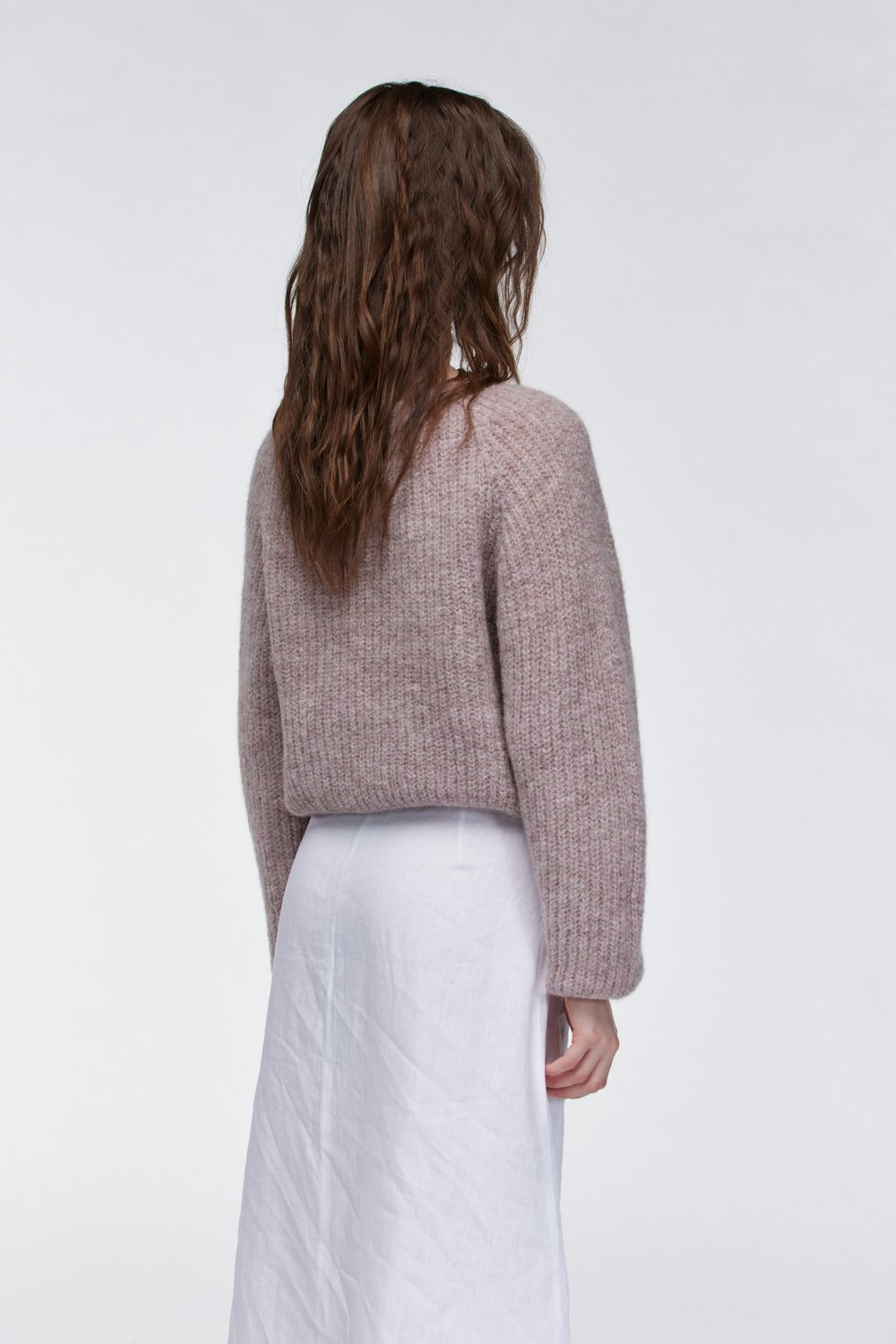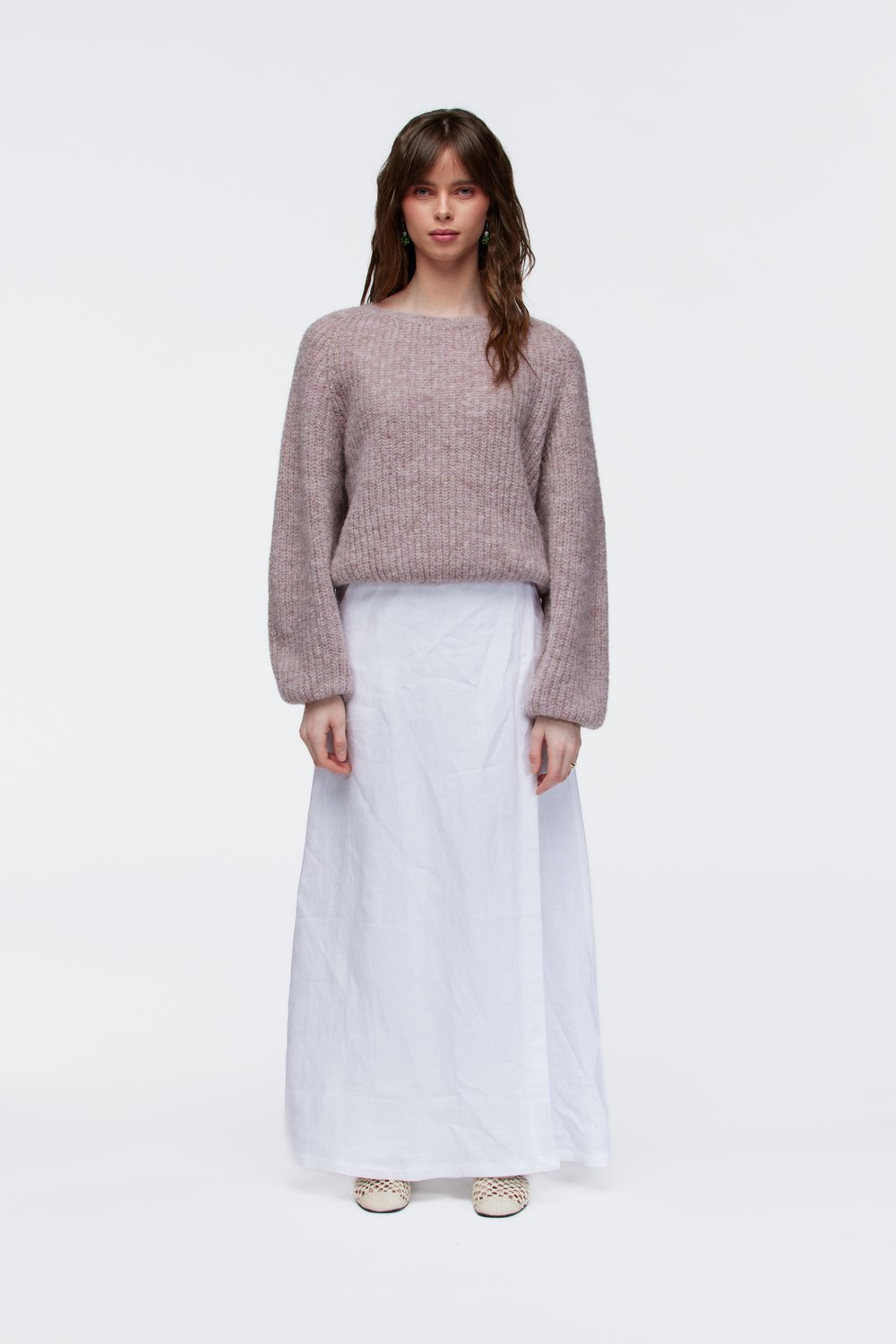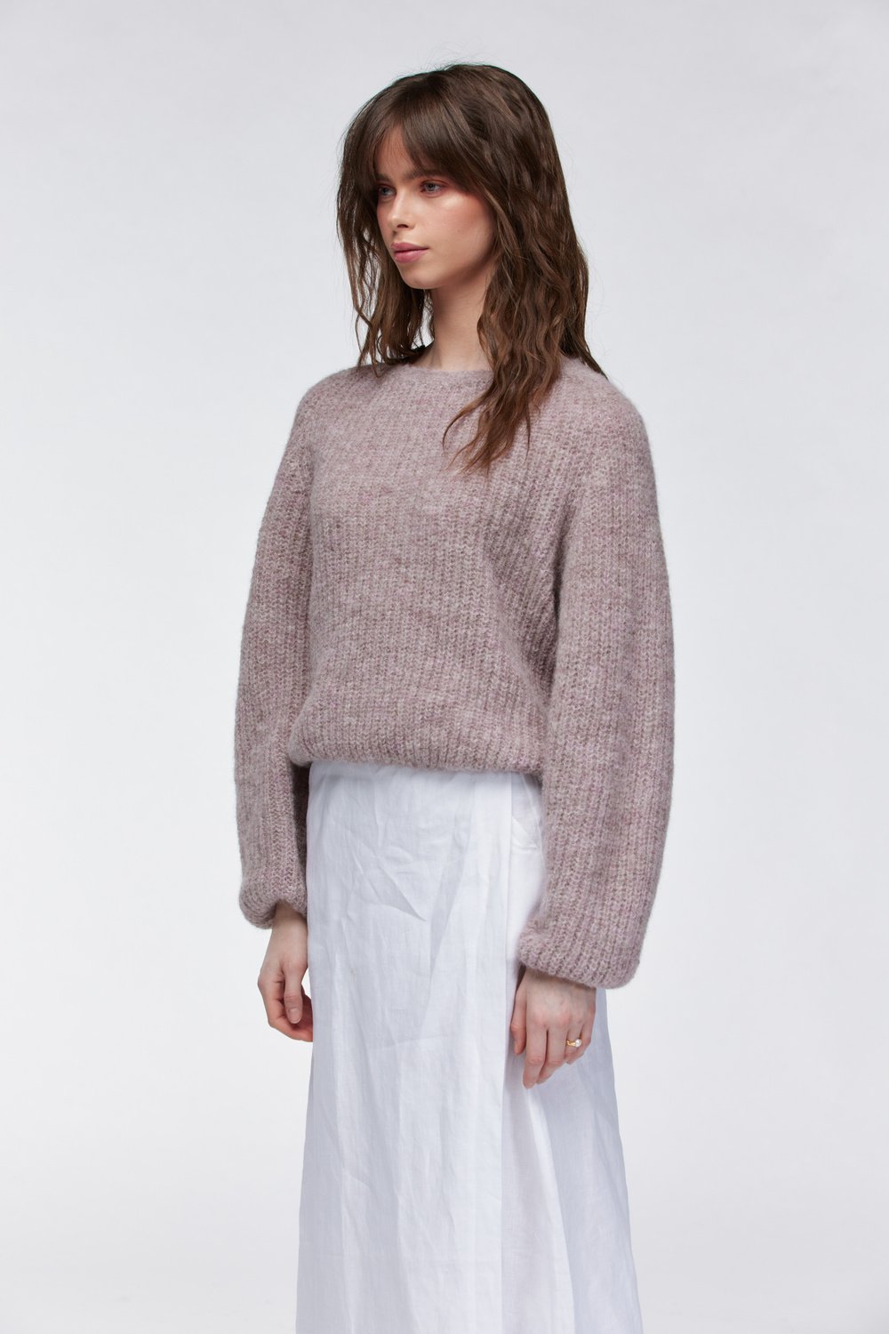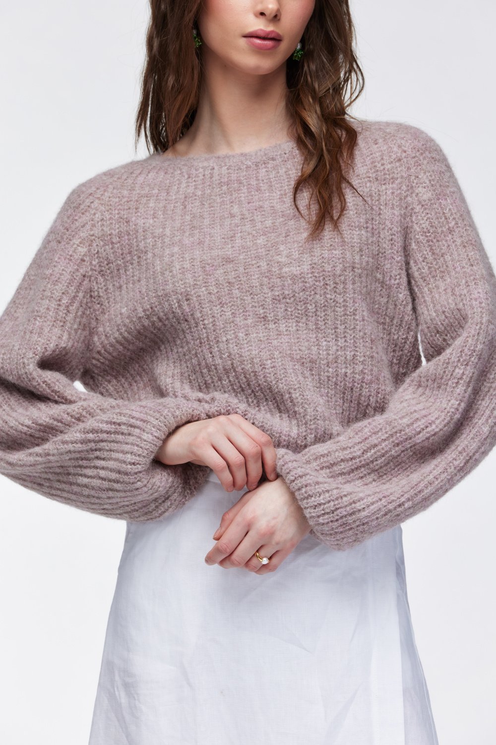 "Lerke kort genser" fra Woodling. En nydelig strikkegenser med ballongermer, som gir det lille ekstra til antrekket.