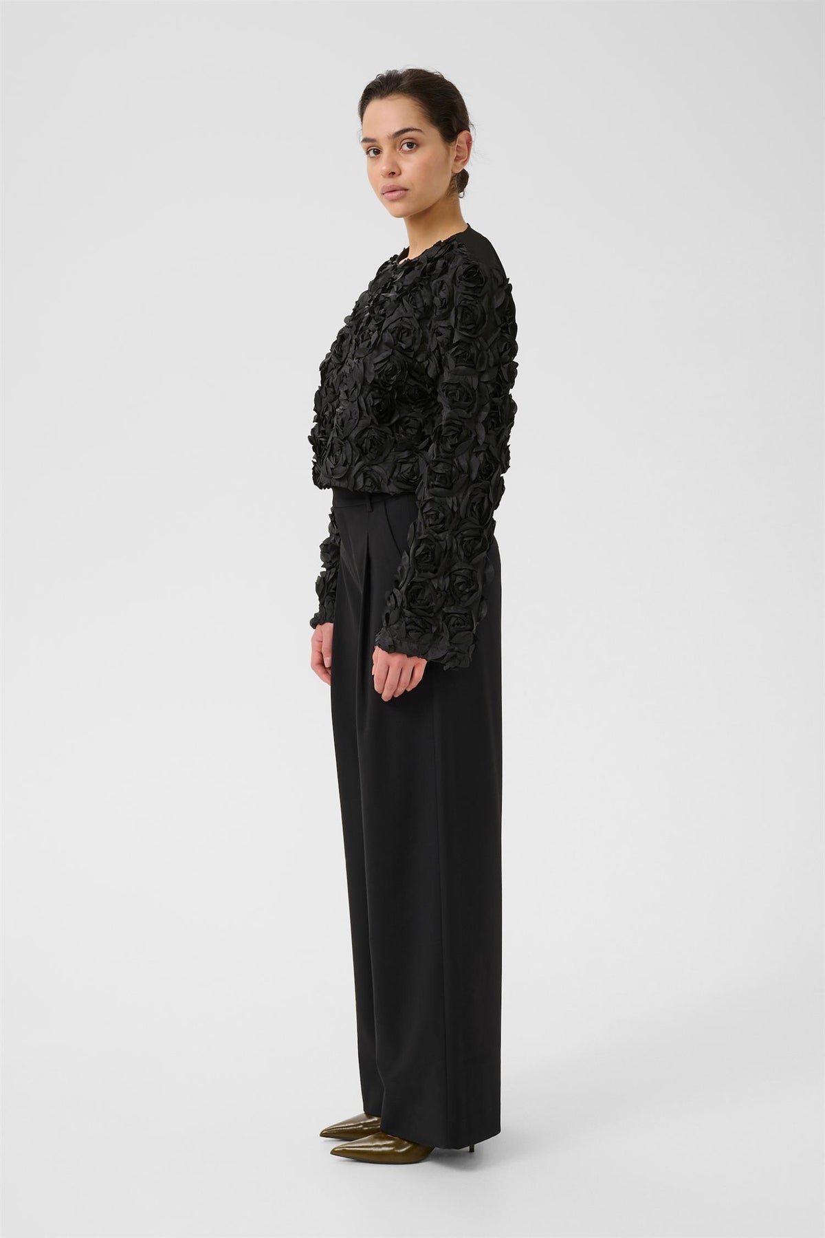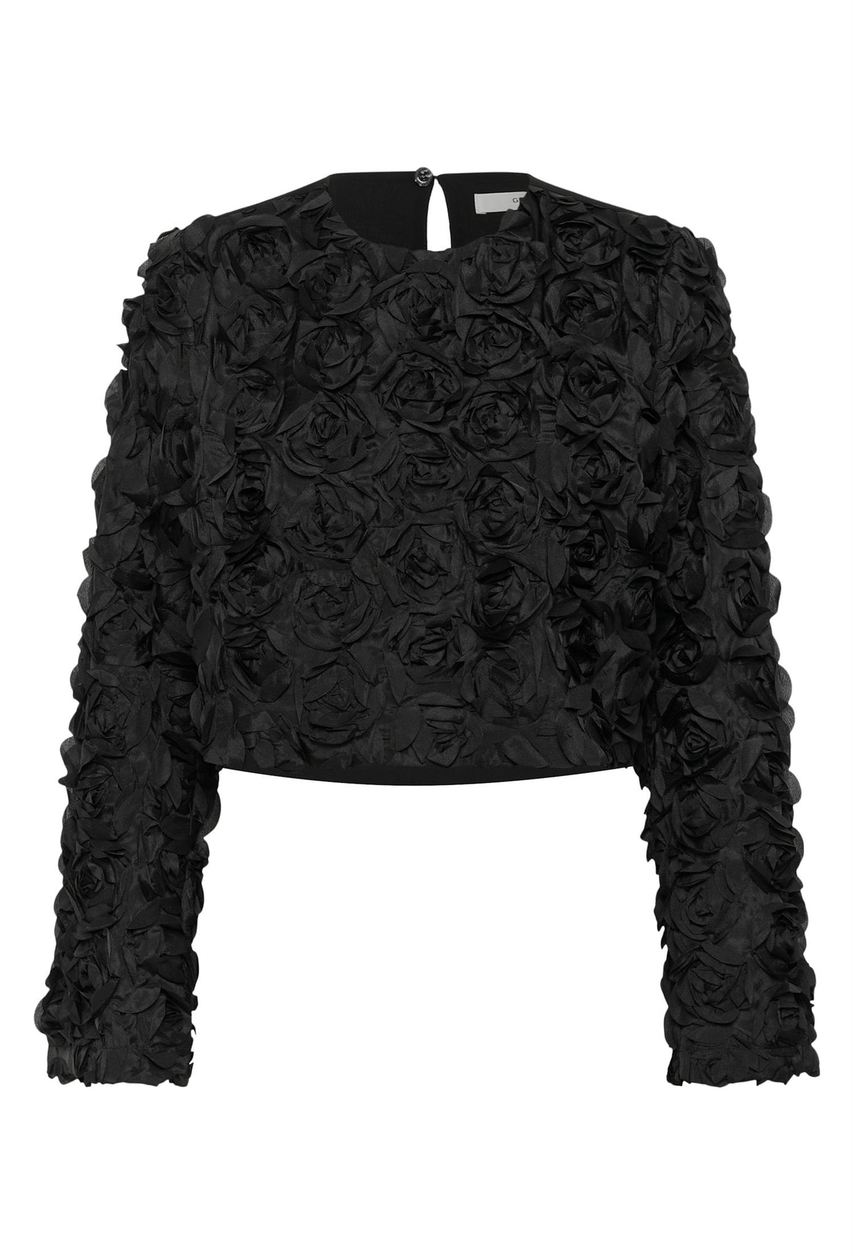 "GZingrid top" fra Gestuz er en stilren og moderne bluse med 3D-blomsterdetaljer. Den er perfekt for både hverdagsbruk og festlige anledninger.