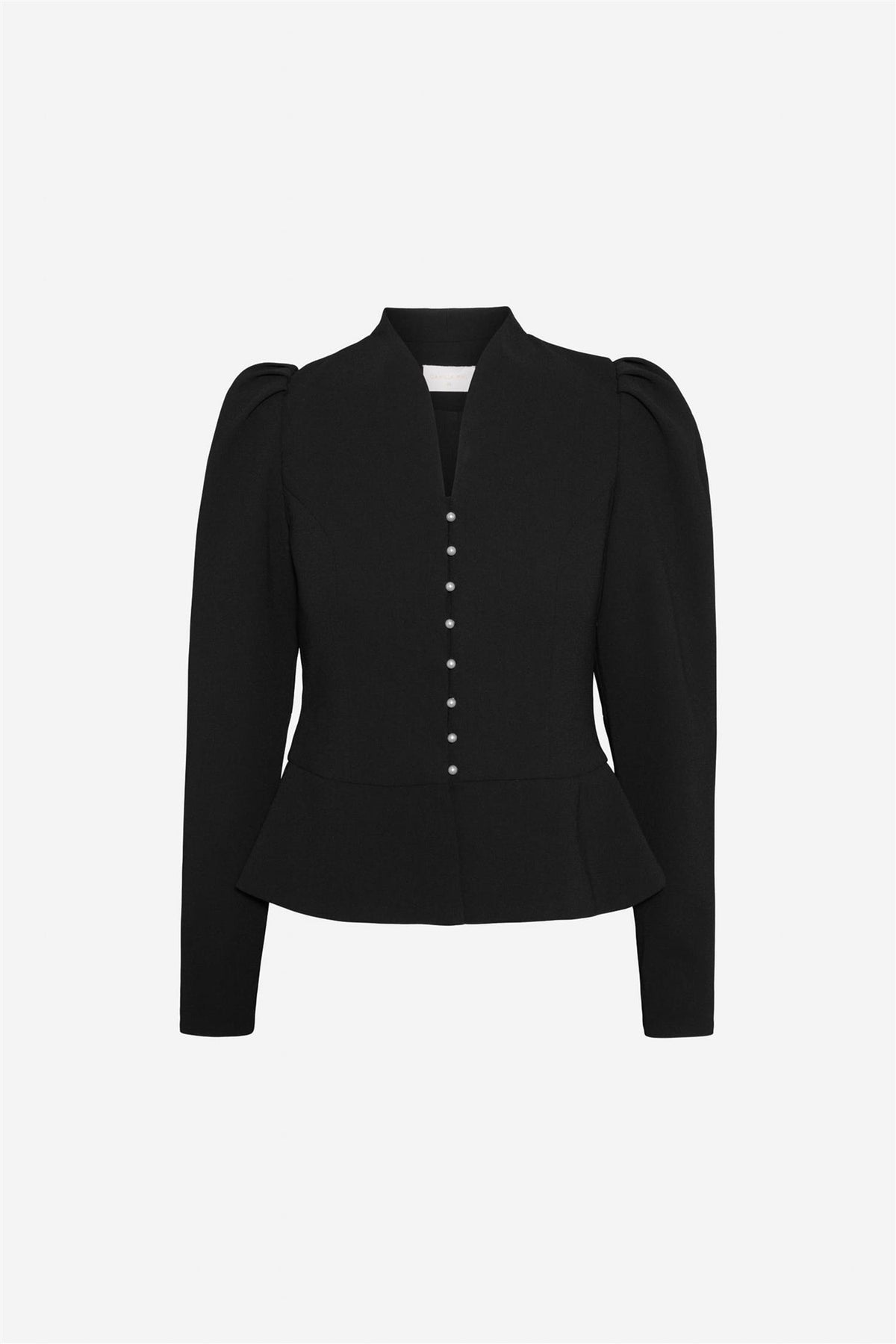 "Gilli Jacket" fra Camilla Pihl er designet med en flatterende peplum-midje som skaper en myk og feminin silhuett. Den er dekorert med delikate perleknapper i front, som gir et elegant uttrykk – perfekt både til en oppgradert hverdagslook og til spesielle anledninger.