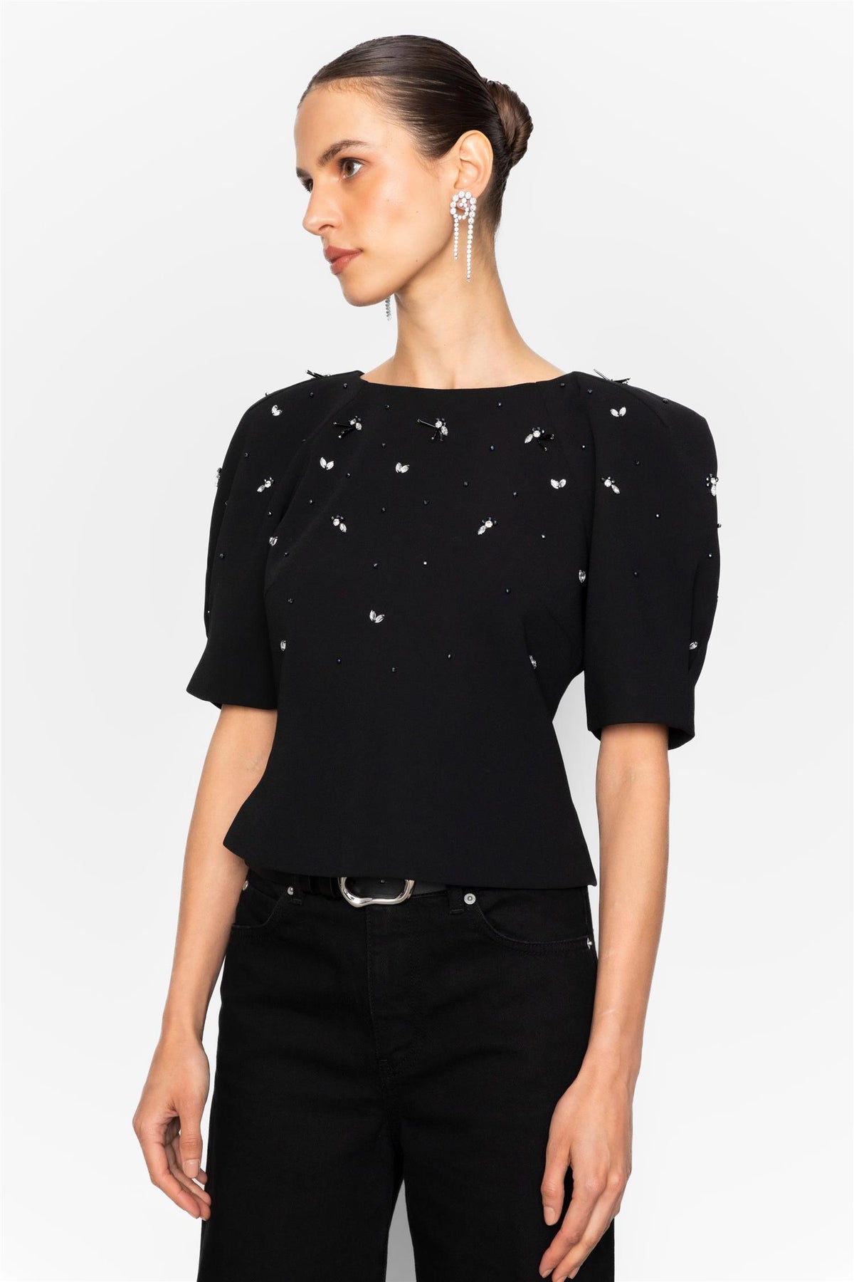 "Lowa Top" fra Camilla Pihl. En elegant topp med delikate detaljer, som subtile skulderputer og perler.