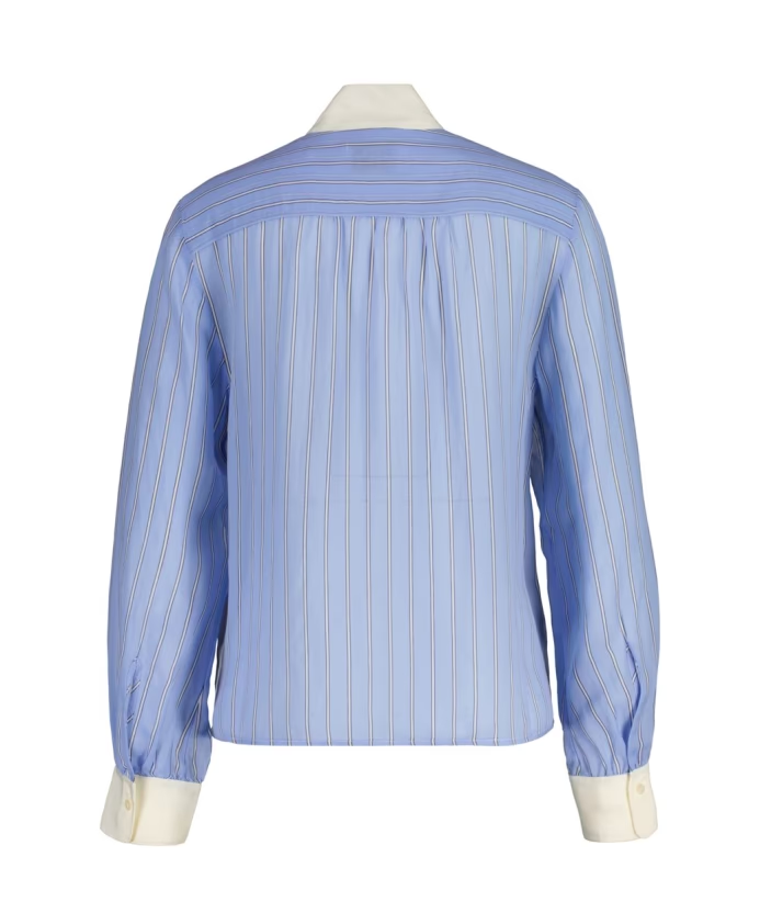"Reg Striped Contrast Bow Blouse" fra Gant. En elegant bluse, med striper, skjult knappestolpe og en sløyfe i halsen som gjør det lille ekstra i til antrekket.